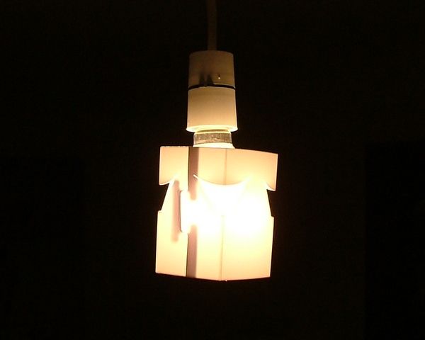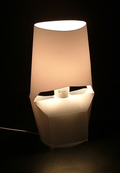 This was my first prototype for a takeaway lamp, it was designed to be a cheap product that could be quickly brought and taken out of the shop as is. The problem with this first prototype was that the polypropylene was too thin to be used in the manor designed.