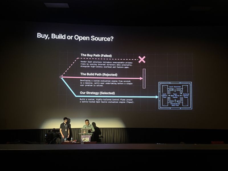 To solve fragmented authorization, Roblox built Guard, a custom multi-tenant control plane. It uses Topaz, an open-source OPA-compliant engine, deployed as a sidecar to evaluate policies locally with millisecond latency.